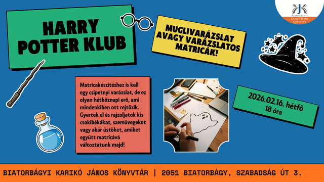 Matricakészítéshez is kell egy csipetnyi varázslat, de ez olyan hétköznapi erő, ami mindenkiben ott rejtőzik. Gyertek el és rajzoljatok kis csokibékákat, szemüvegeket vagy akár üstöket, amiket együtt matricává változtatunk majd! Varázspálca opcionális!